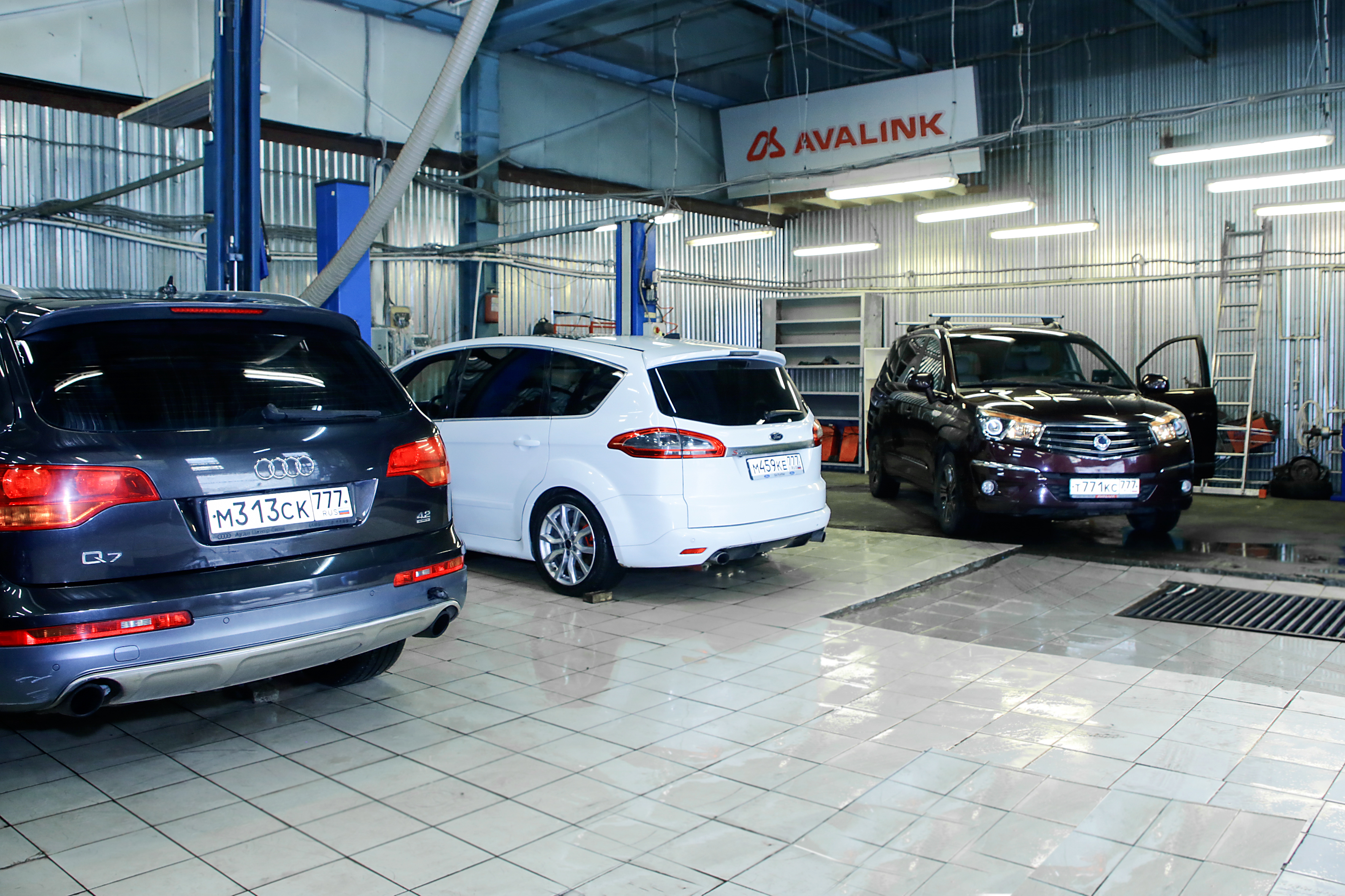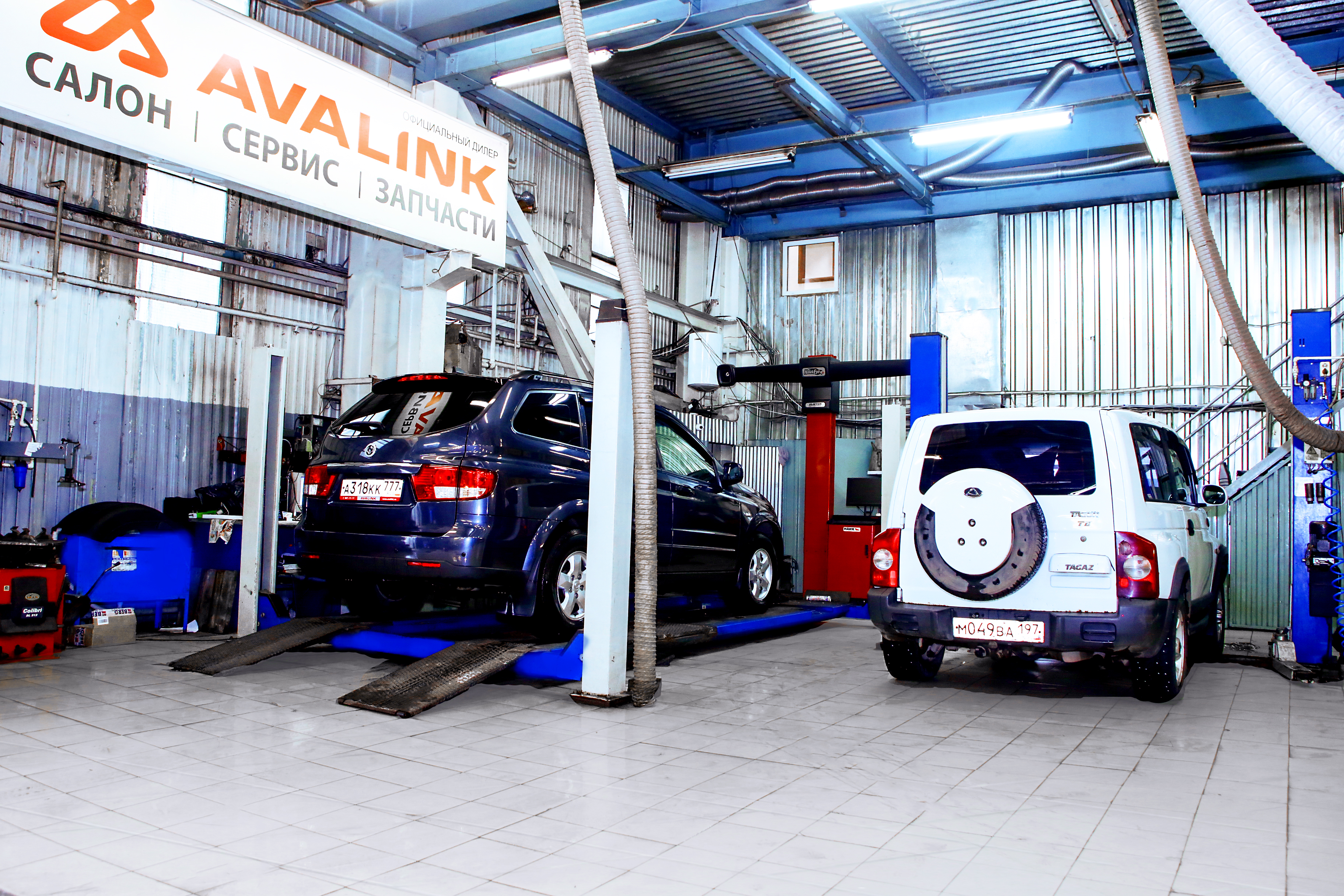 Слесарный цех: 5 подъемников, 3D развал схождение, заправка кондиционеров, шиномонтаж, аппаратная замена масла, спец. инструмент